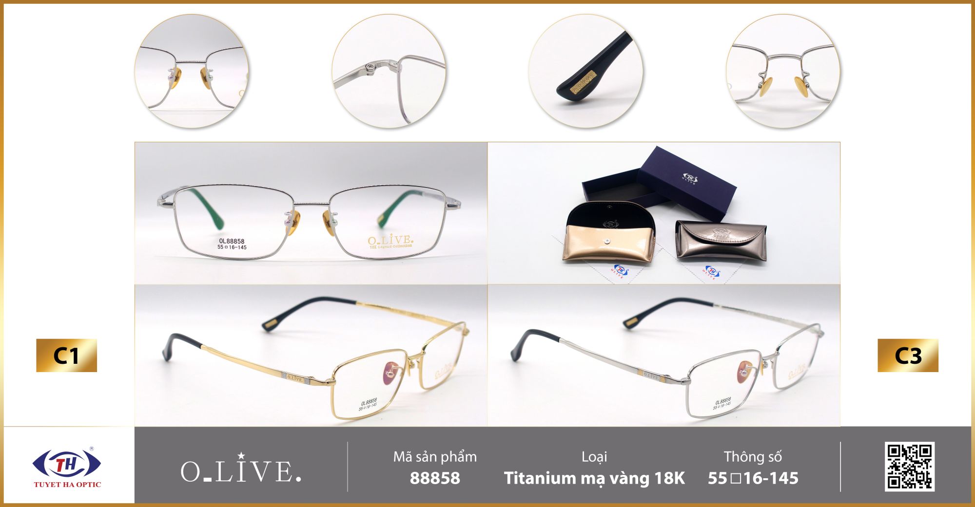 Gọng kính cao cấp đến từ Công ty Tuyết Hà mang thương hiệu Olive là dòng kính cận có chất liệu Titanium nguyên khối được mạ vàng 18k. Mang lại sự sang trọng, đẳng cấp và phong thái bậc nhất dành cho các quý ông quý bà.