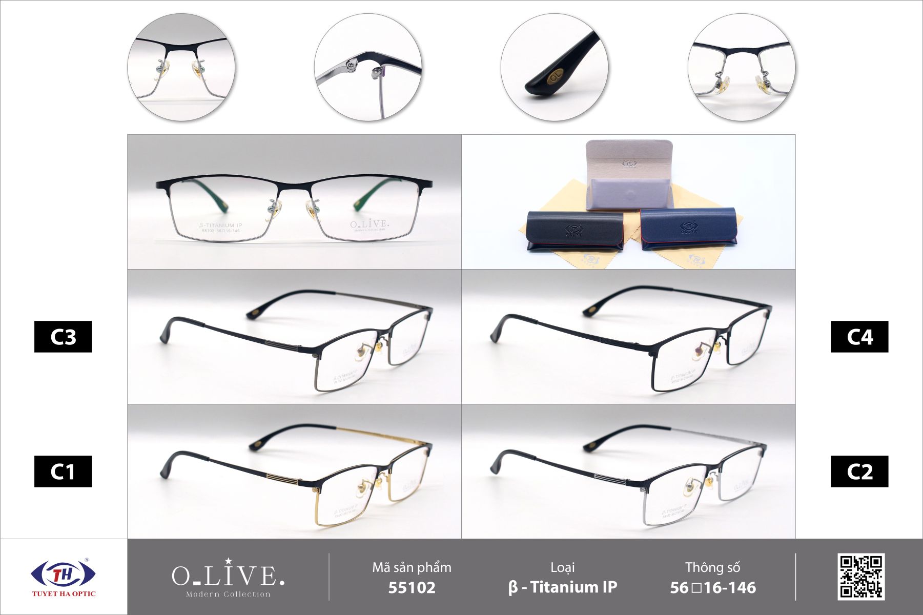 Gọng kính Titanium thương hiệu Olive
